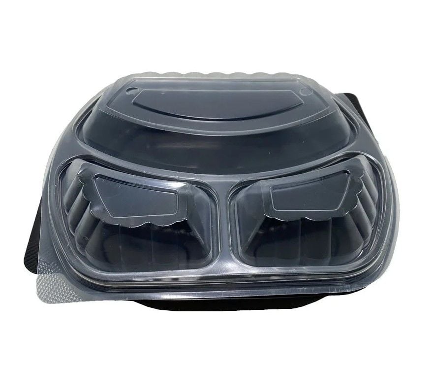 3 Bölmeli Kapaklı Gıda Kabı (Sıcağa Dayanıklı) plastik mikrodalgaya girebilen, ısıya dayanıklı, tek kullanımlık sıcak servis setidir.Restaurant ve cafelerin makarna, ızgara et ve tavuk gibi ürünlerini paket servisle müşterilerine gönderimi için uygundur.Kapak ürüne dahildir..