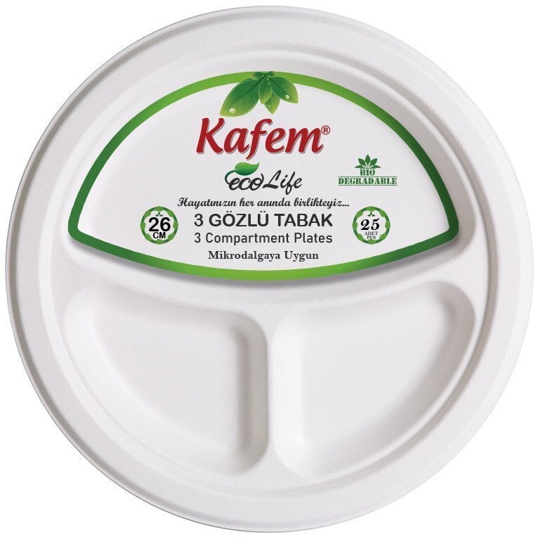 Kafem Karton Tabak 26 Cm 3 Göz 25 Li